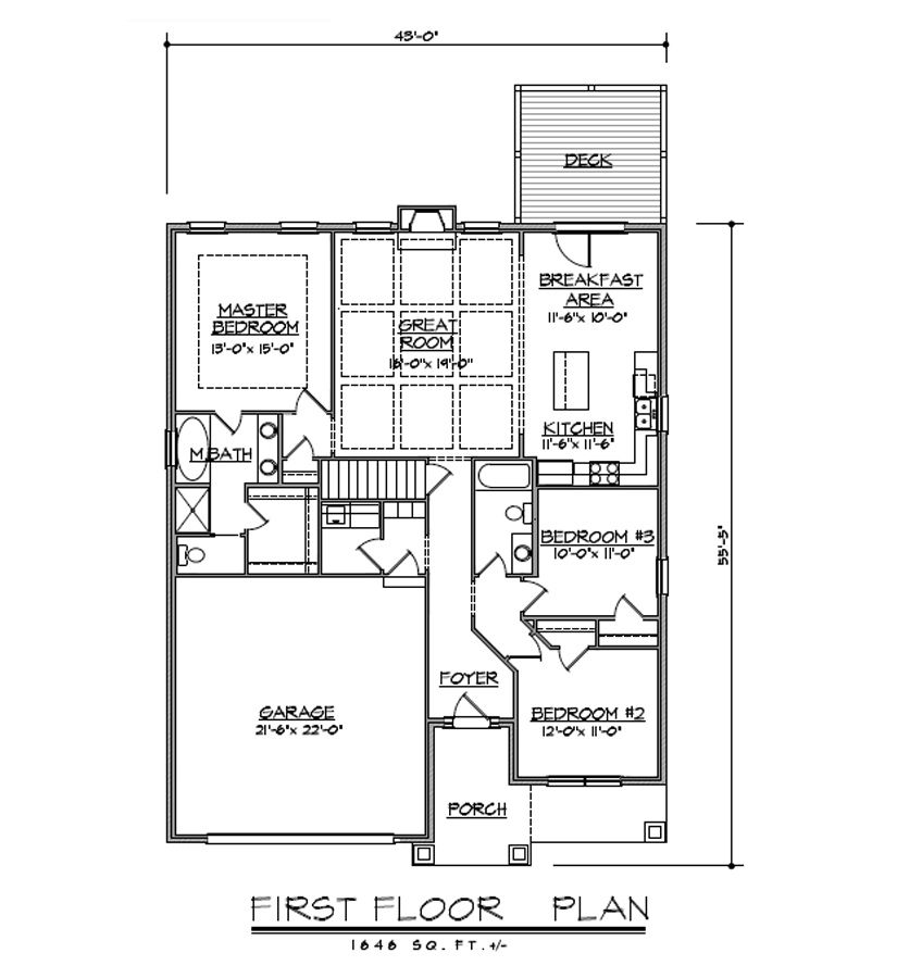 | Square footage | 1646 Square Feet | Width | 43′-0″ | Depth | 55′-5″ | Foundation Basement |
