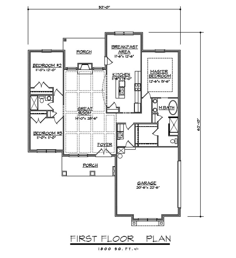| Square footage | 1800 Square Feet | Width | 52′-0″ | Depth | 62′-10″ | Foundation Basement | |